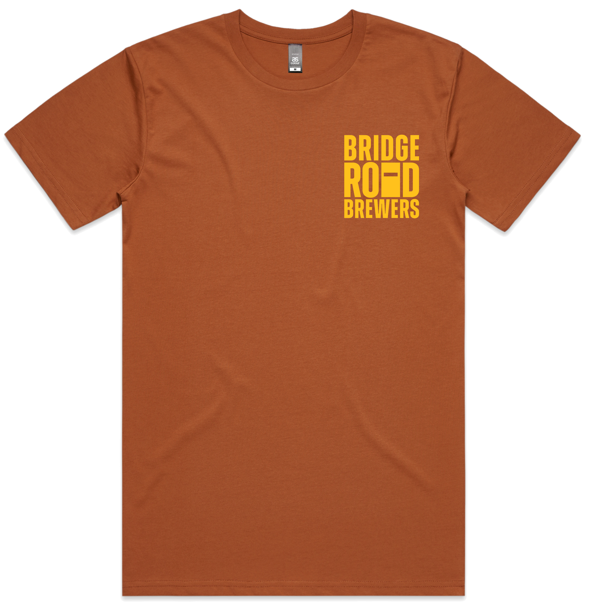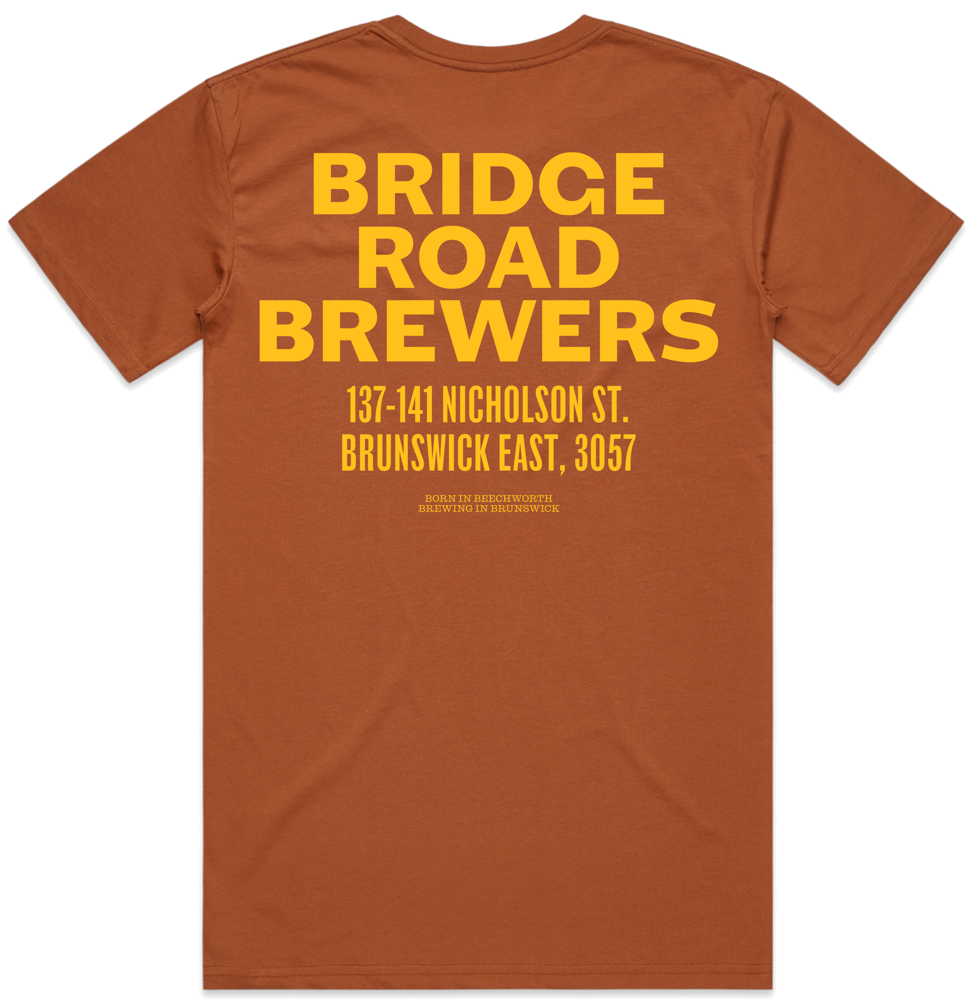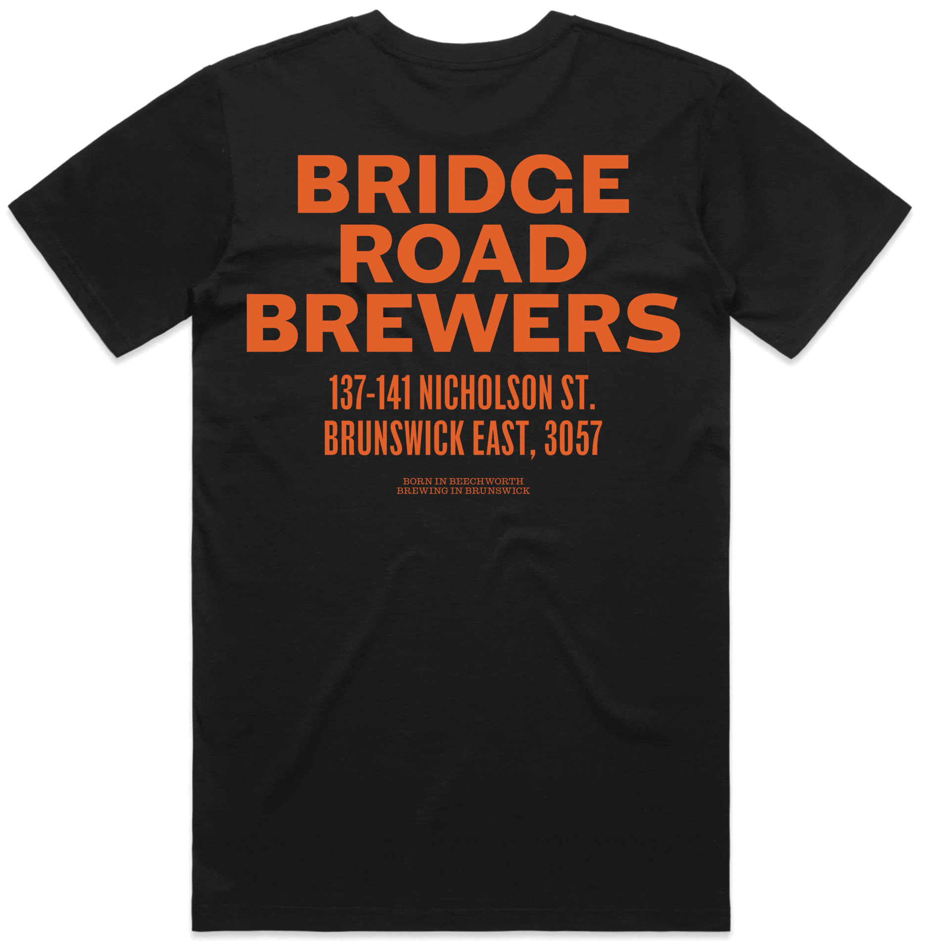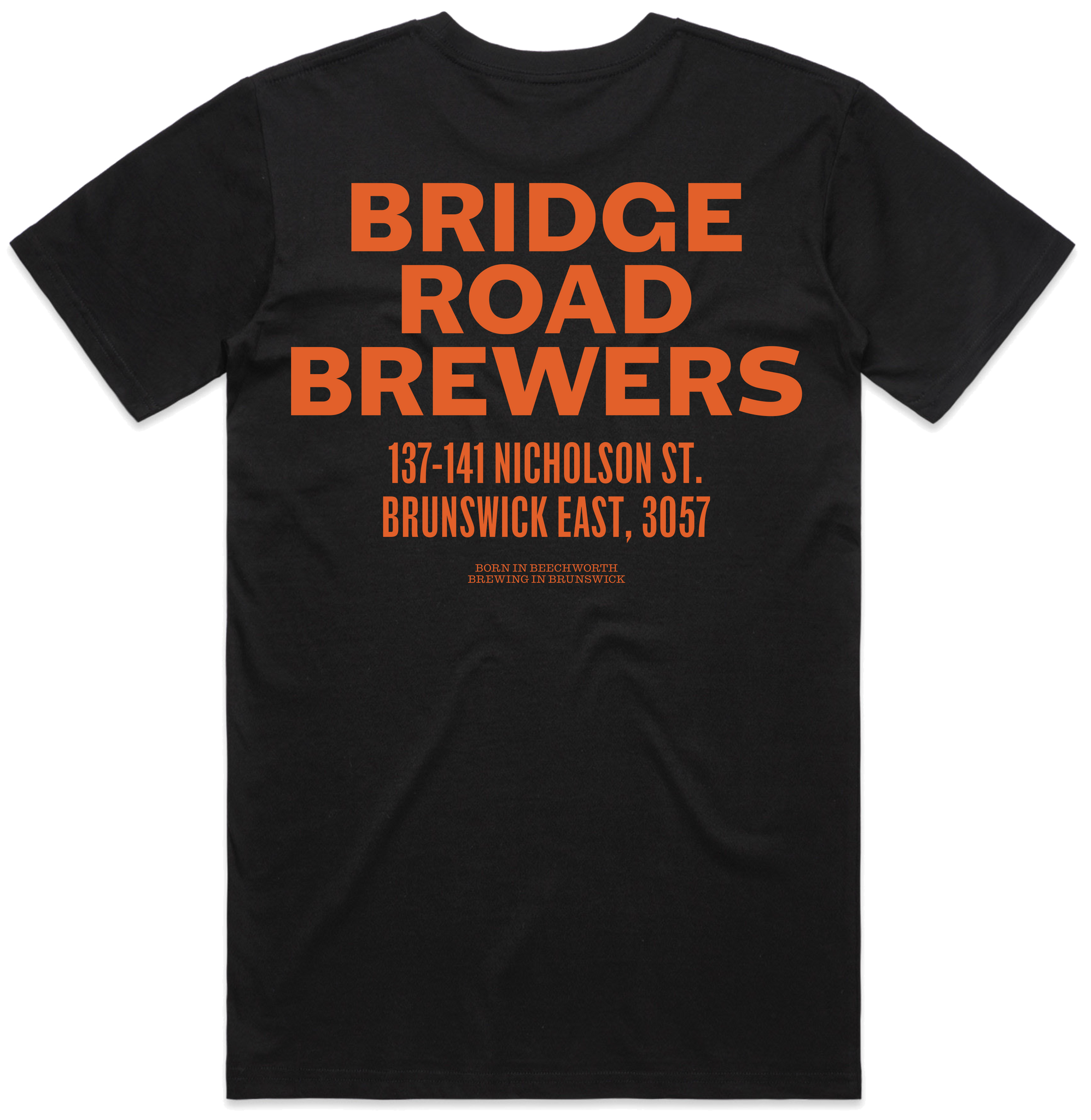 Black or Copper tee with Bridge Road Brewers logo on the front and BRB Brunswick Address on the back. See pics for colour variations